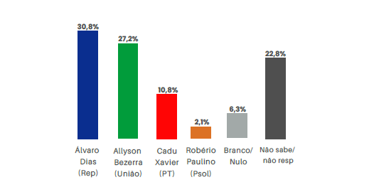 PESQUISA MEDIA/ GOVERNO/ ESTIMULADA: Álvaro Dias lidera com 30,8%; Allyson Bezerra tem 27,2% e Cadu Xavier 10,8%