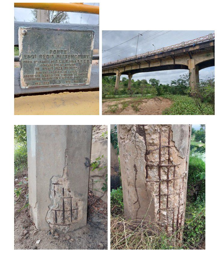 Em uma perícia, técnicos do Centro de Apoio Técnico Especializado do MPRN (CATE/RN) atestaram o avançado estado de deterioração. O parecer técnico citou fissuras no alambrado e pavimentação, instalação elétrica exposta e vegetação aflorando. Além disso, notou corrosão avançada em vigas, transversina e lajes da ponte. O sistema de drenagem pluvial também está comprometido.