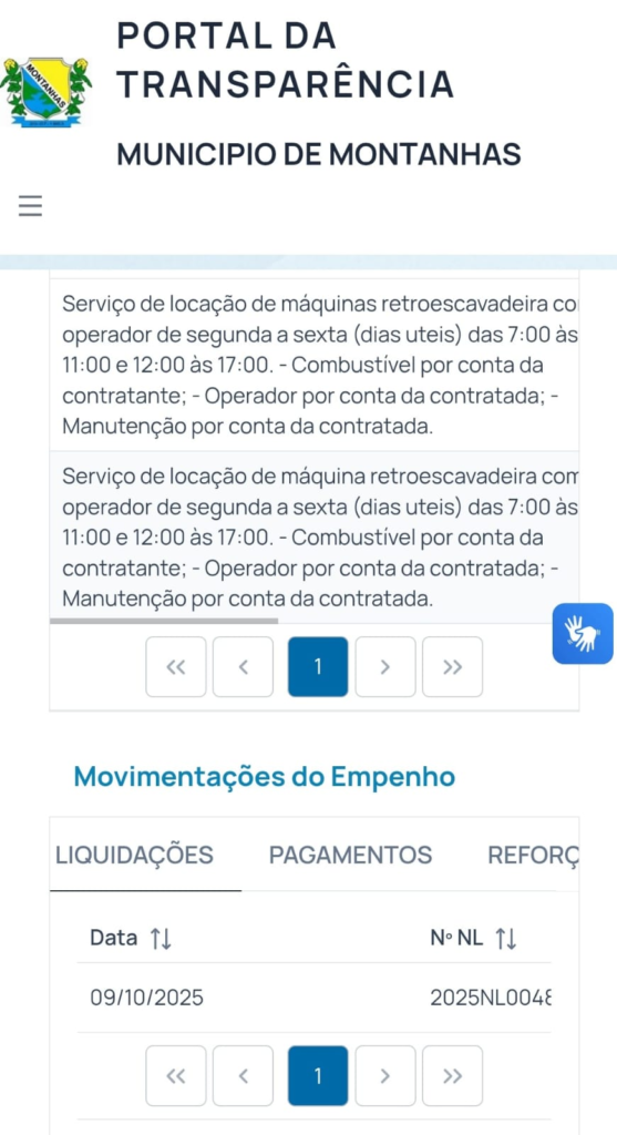 Segundo informações do portal da transparência do município de Montanhas, o contrato está amparado no Pregão Eletrônico 21/2024, e prevê a prestação do serviço de locação de máquina retroescavadeira com operador de segunda a sexta (dias uteis) das 7:00 às 11:00 e 12:00 às 17:00.