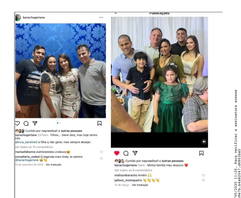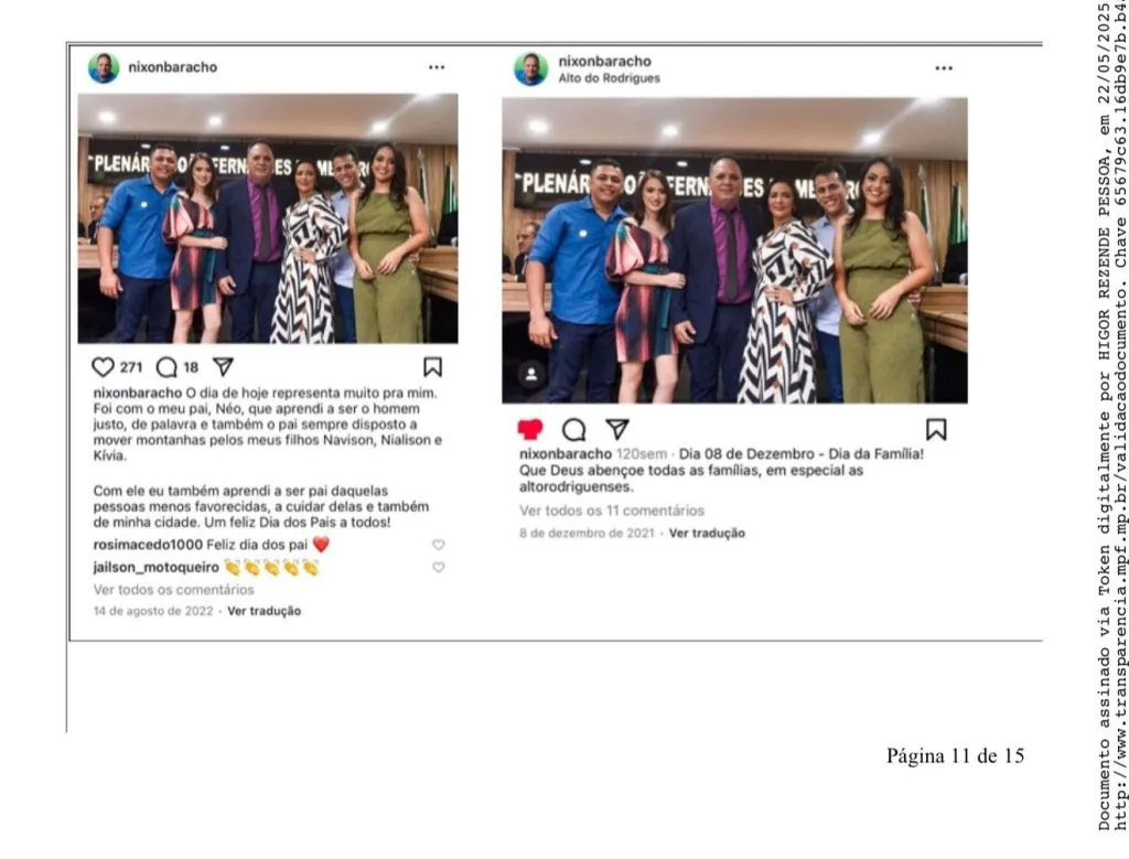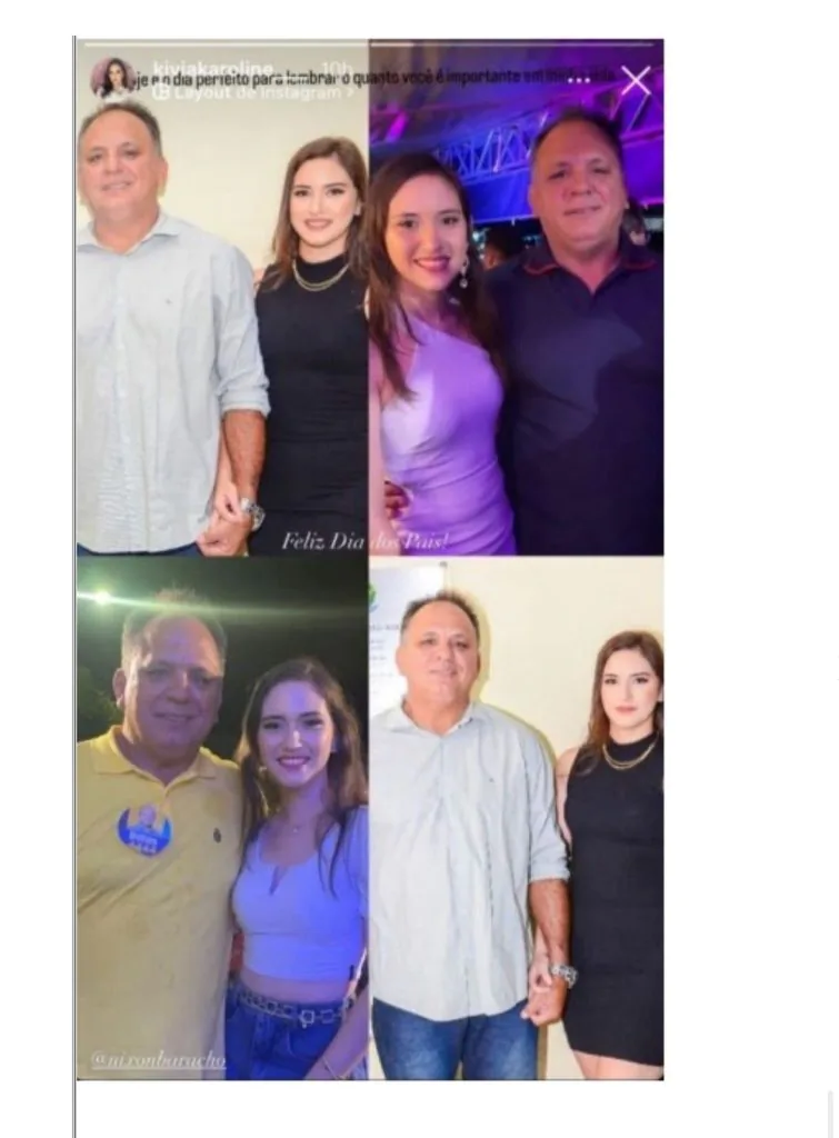 Segundo o MPE, as provas reunidas incluem documentos, registros fotográficos em eventos sociais, políticos e familiares. Dentre as provas, publicações nas redes sociais, em que o ex-prefeito Nixon faz referências à vereadora Kívia, como ’filha’’, além de declarações públicas do relacionamento de pai e filha no cotidiano da convivência no município. Veja algumas imagens: