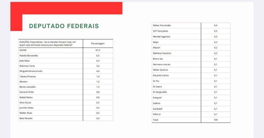 A pesquisa seta, divulgada esta semana sobre a intenção de voto espontânea para deputado federal, mostra o deputado Robinson Faria entre os mais votados.