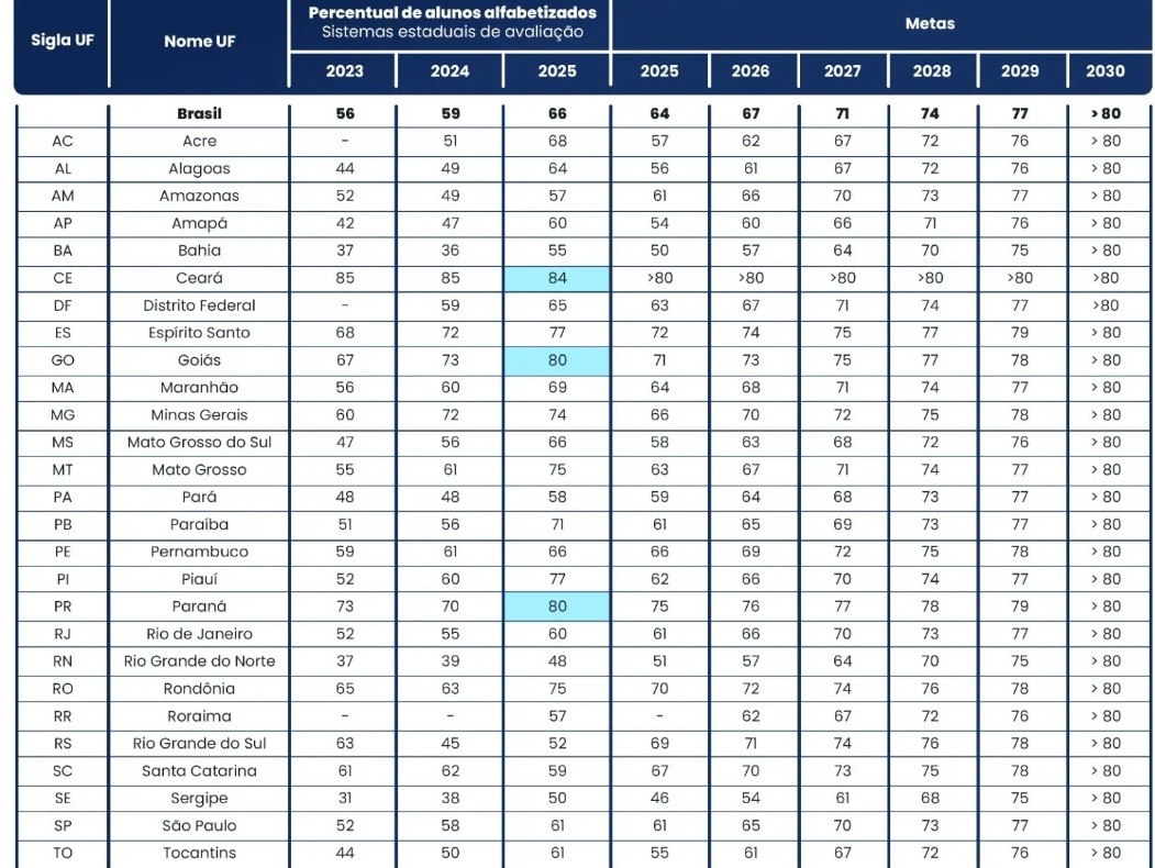 De acordo com o levantamento, apenas uma minoria dos estados não conseguiu cumprir o objetivo em 2025, e entre eles está o Rio Grande do Norte. Mais grave ainda: o desempenho potiguar o coloca na última posição nacional, evidenciando um cenário crítico na educação pública.