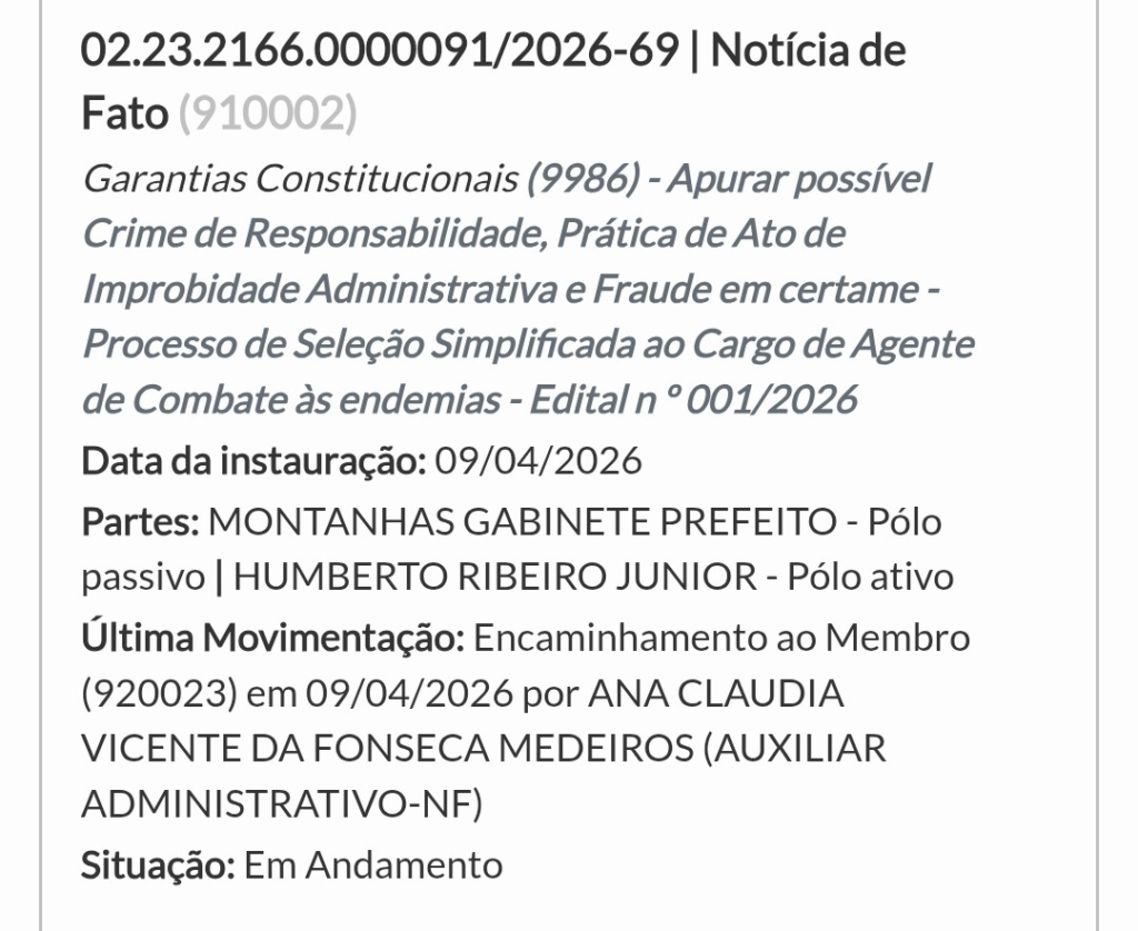 URGENTE: Após denúncia, MP instaura procedimento para apurar possível fraude em Processo Seletivo de Agente de Combate às Endemias em Montanhas